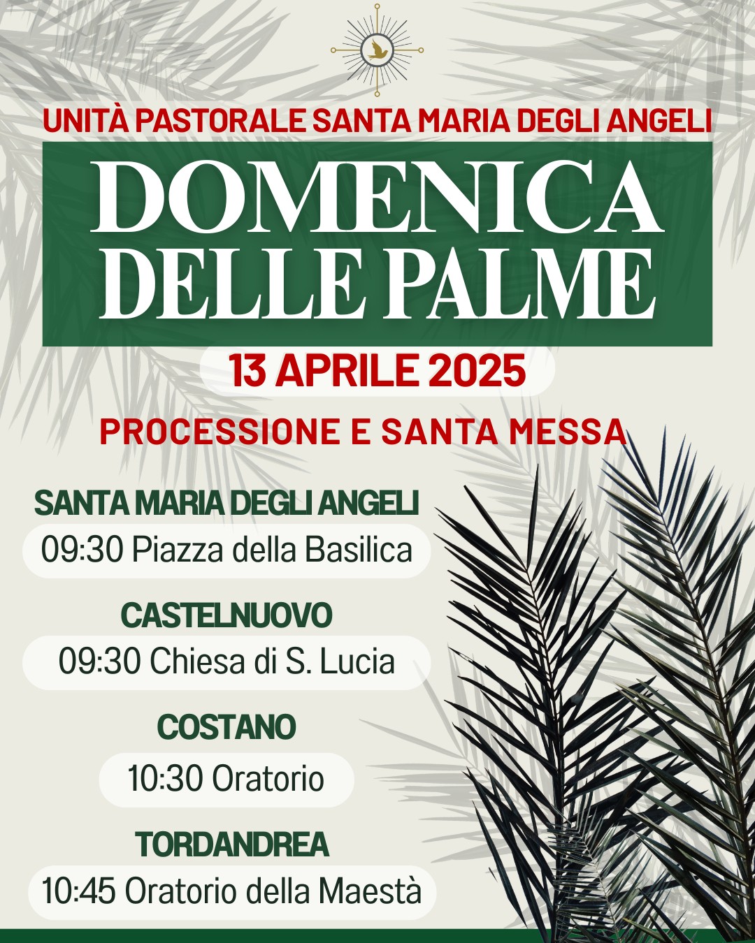 Nella ๐๐ผ๐บ๐ฒ๐ป๐ถ๐ฐ๐ฎ ๐ฑ๐ฒ๐น๐น๐ฒ ๐ฃ๐ฎ๐น๐บ๐ฒ la Chiesa commemora Cristo Signore che entra in Gerusalemme per portare a compimento il suo mistero pasquale. Perciรฒ, si fa memoria di questo ingresso del Signore, in particolare con la processione prima della Messa.