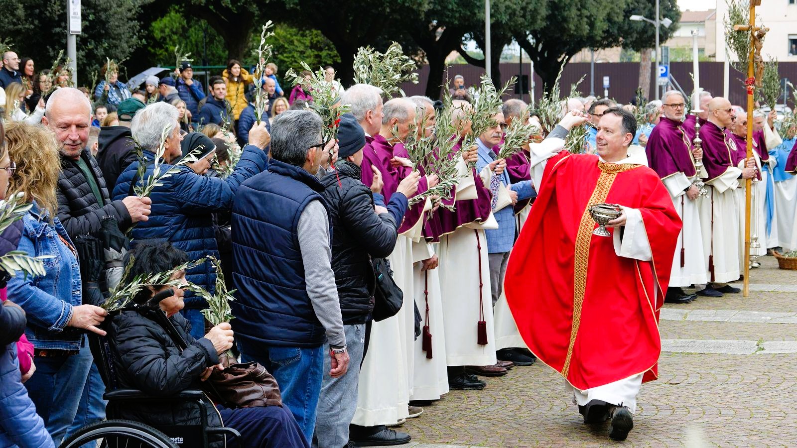 Le immagini della processione e Santa Messa della Domenica delle Palme nella Basilica di Santa Maria degli Angeli.
