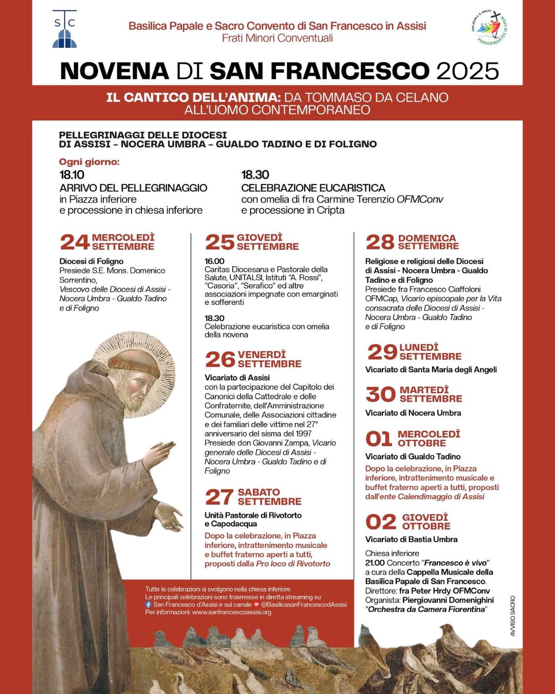 LunedΓ¬ 29 settembre 2025, il ππ’πππ«π’πππ¨ ππ’ πππ§ππ πππ«π’π πππ π₯π’ ππ§π ππ₯π’ prenderΓ parte alla tradizionale Novena in preparazione alla festa di San Francesco che si svolgerΓ nella chiesa inferiore della Basilica di San Francesco.