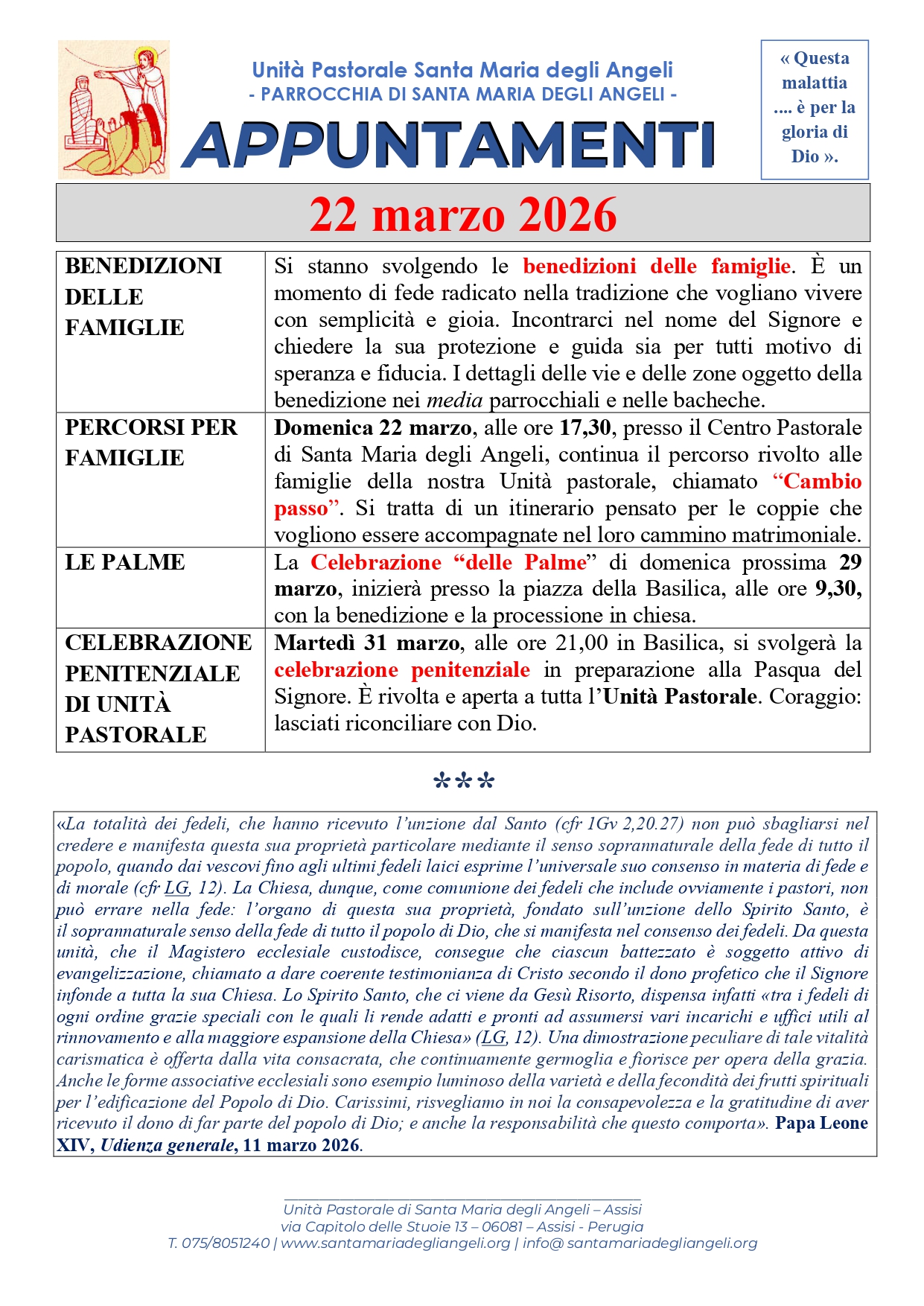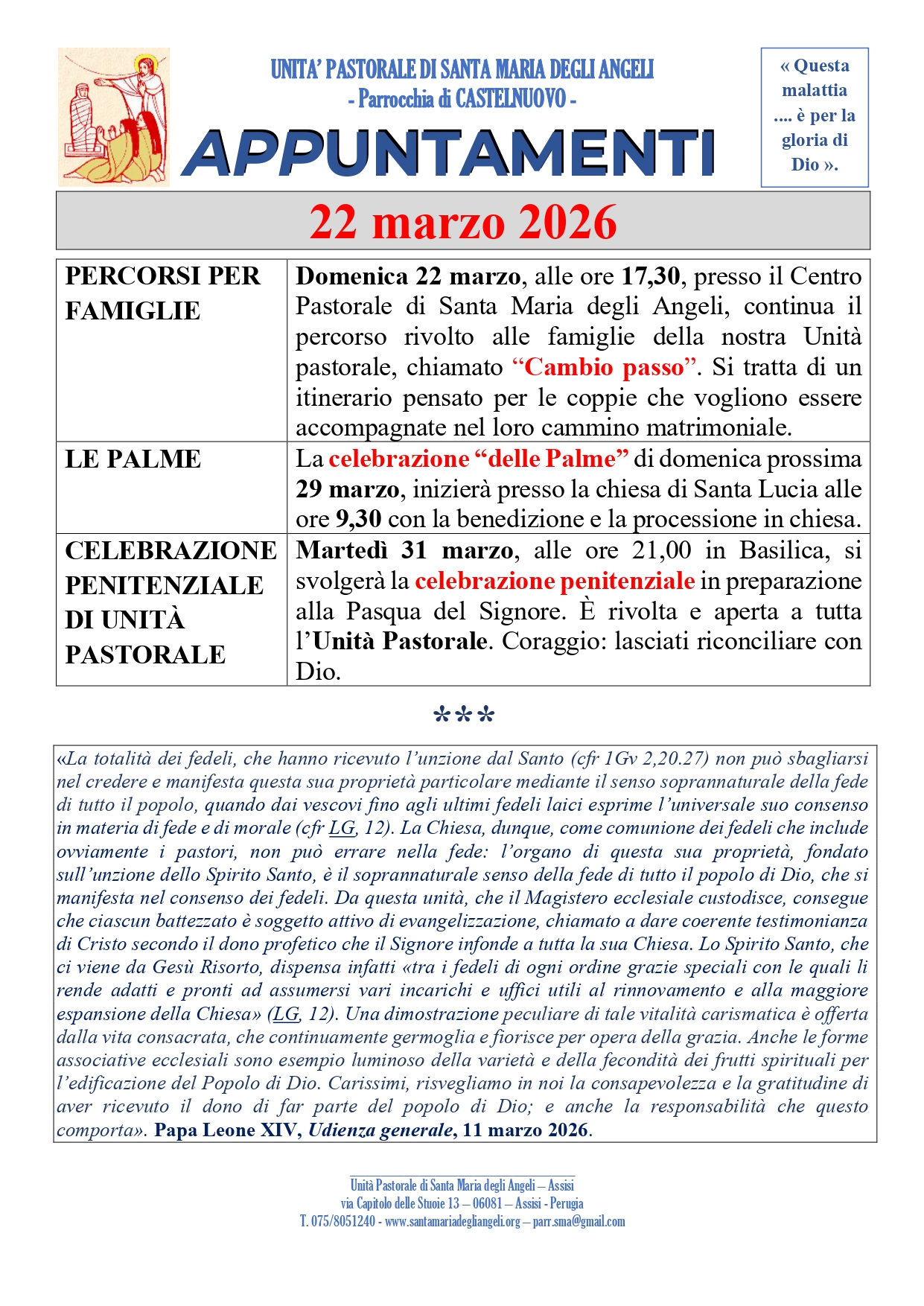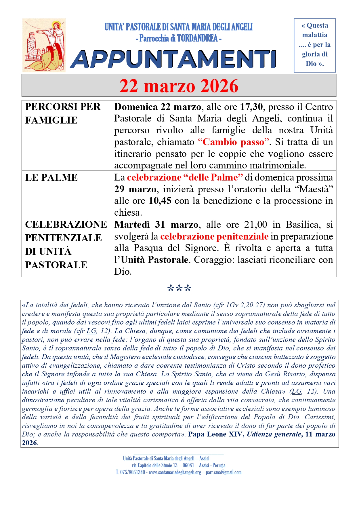 Avvisi della settimana – Domenica 22 marzo 2026