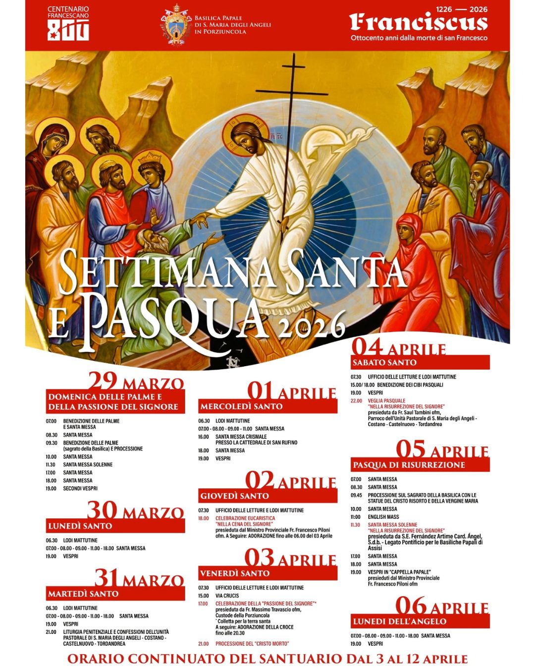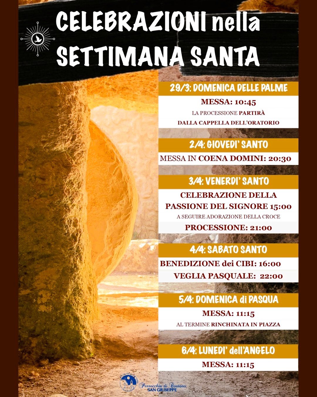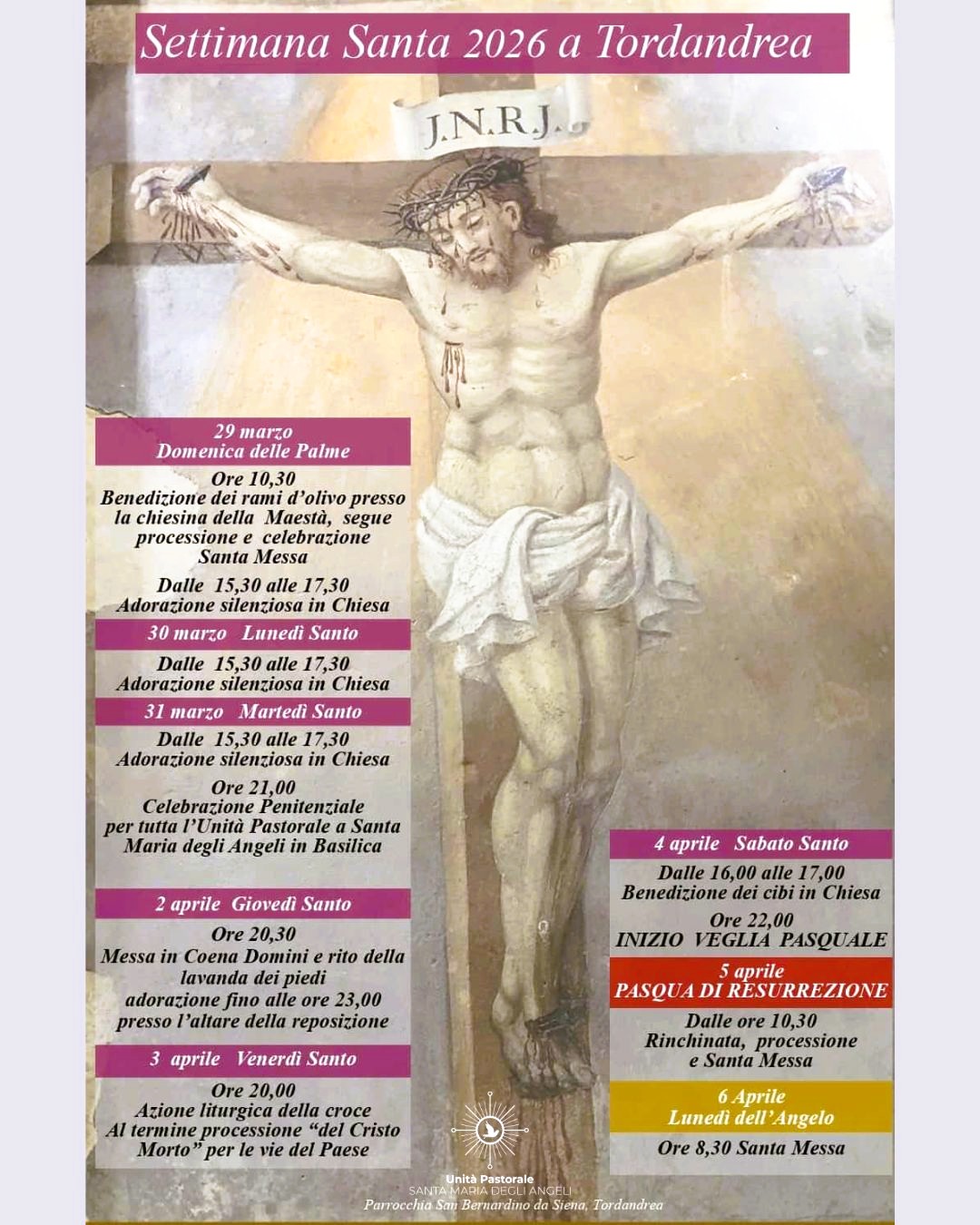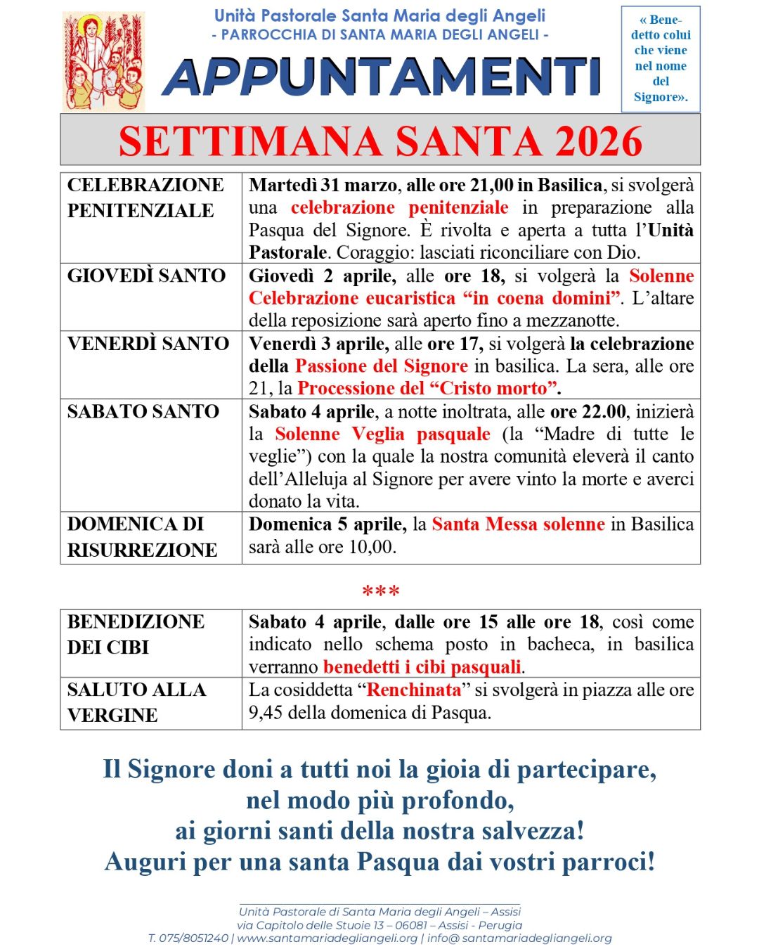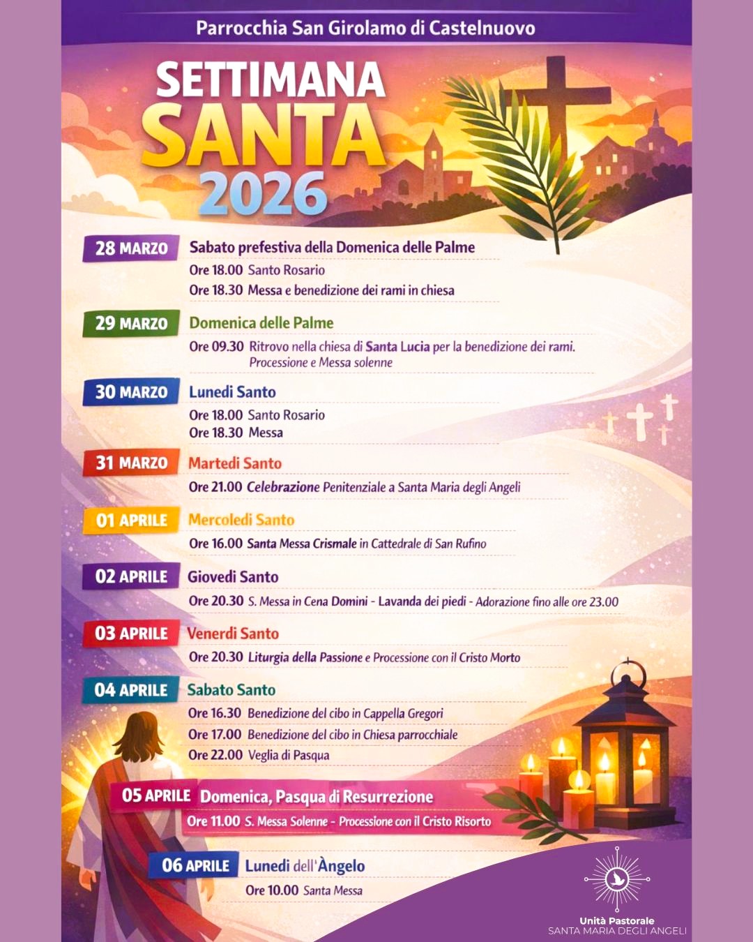 Tutti gli appuntamenti delle celebrazioni della Settimana Santa nelle parrocchie dell’Unità pastorale di Santa Maria degli Angeli.