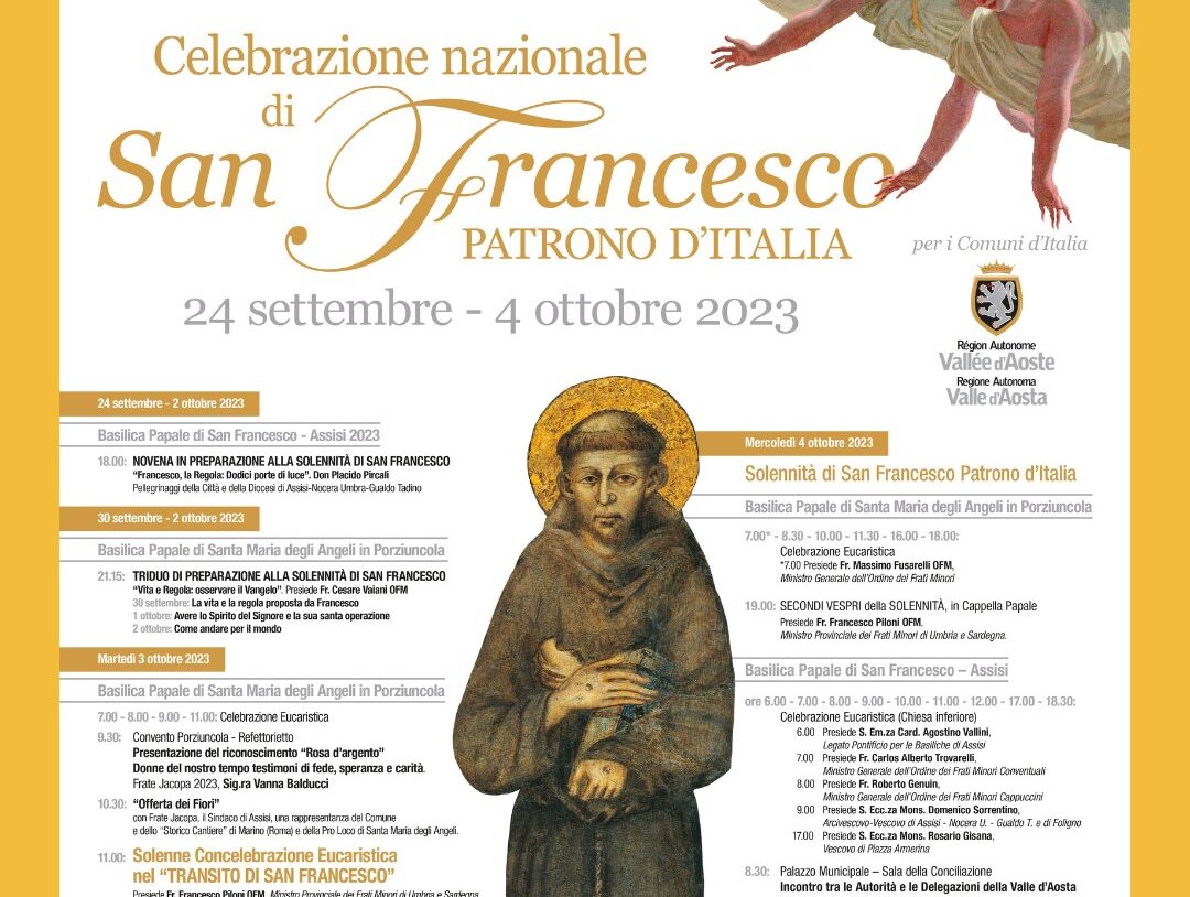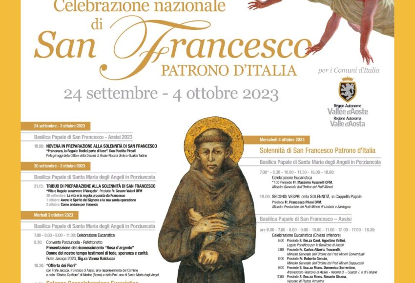 Il prossimo 4 ottobre, festa liturgica di San Francesco, nostro patrono e guida, la celebrazione eucaristica parrocchiale si svolgerà alle ore 10:00. Il giorno prima, 3 ottobre, alle ore 18:00