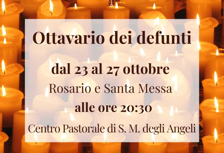 A partire da lunedì 23 ottobre e fino a venerdì 27 ottobre, con il rosario e la Santa Messa in suffragio dei defunti, alle ore 20:30 presso il Centro Pastorale,