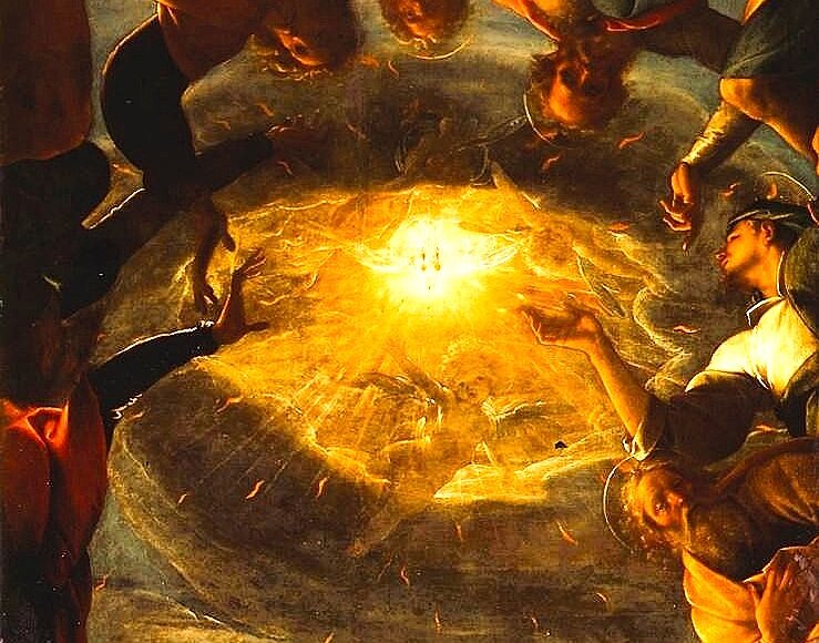 Destinata ad ornare il soffitto della Cappella di San Giovanni Battista nel Palazzo dei Giureconsulti di Milano, il telero dipinto dal Morazzone descrive l’evento della Pentecoste con esemplare stile barocco