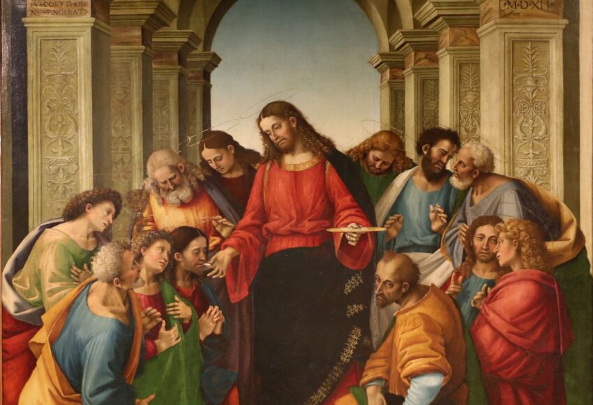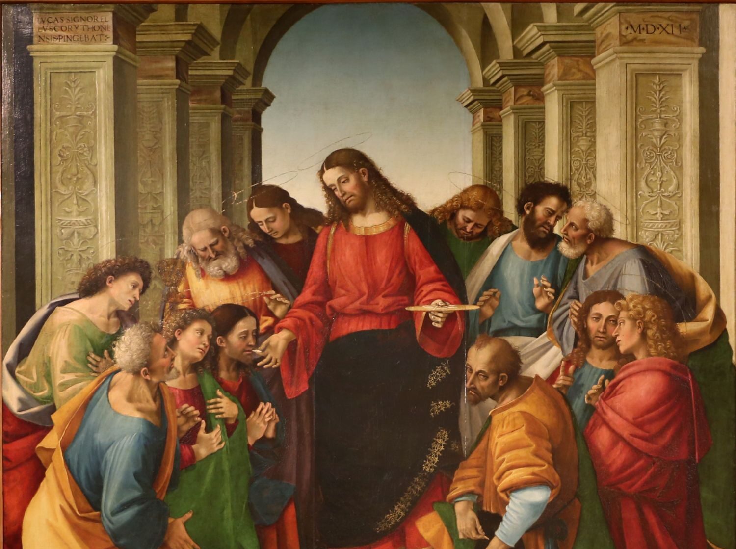 In questa tela di Luca Signorelli tutto ha una regola, tutto un’armonia. Lo spazio ha le sue coordinate e anche la composizione segue una direzione chiara. Tutto appare orientato ad