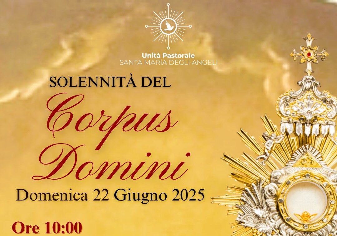 “𝑰𝒐 𝒔𝒐𝒏𝒐 𝒊𝒍 𝒑𝒂𝒏𝒆 𝒗𝒊𝒗𝒐, 𝒅𝒊𝒔𝒄𝒆𝒔𝒐 𝒅𝒂𝒍 𝒄𝒊𝒆𝒍𝒐. 𝑺𝒆 𝒖𝒏𝒐 𝒎𝒂𝒏𝒈𝒊𝒂 𝒅𝒊 𝒒𝒖𝒆𝒔𝒕𝒐 𝒑𝒂𝒏𝒆 𝒗𝒊𝒗𝒓𝒂̀ 𝒊𝒏 𝒆𝒕𝒆𝒓𝒏𝒐” (𝑮𝒗 6,51). 𝐃𝐨𝐦𝐞𝐧𝐢𝐜𝐚 𝟐𝟐 𝐠𝐢𝐮𝐠𝐧𝐨 𝐞̀ 𝐥𝐚 𝐟𝐞𝐬𝐭𝐚 𝐝𝐞𝐥 𝐂𝐨𝐫𝐩𝐮𝐬 𝐃𝐨𝐦𝐢𝐧𝐢. La tradizionale e